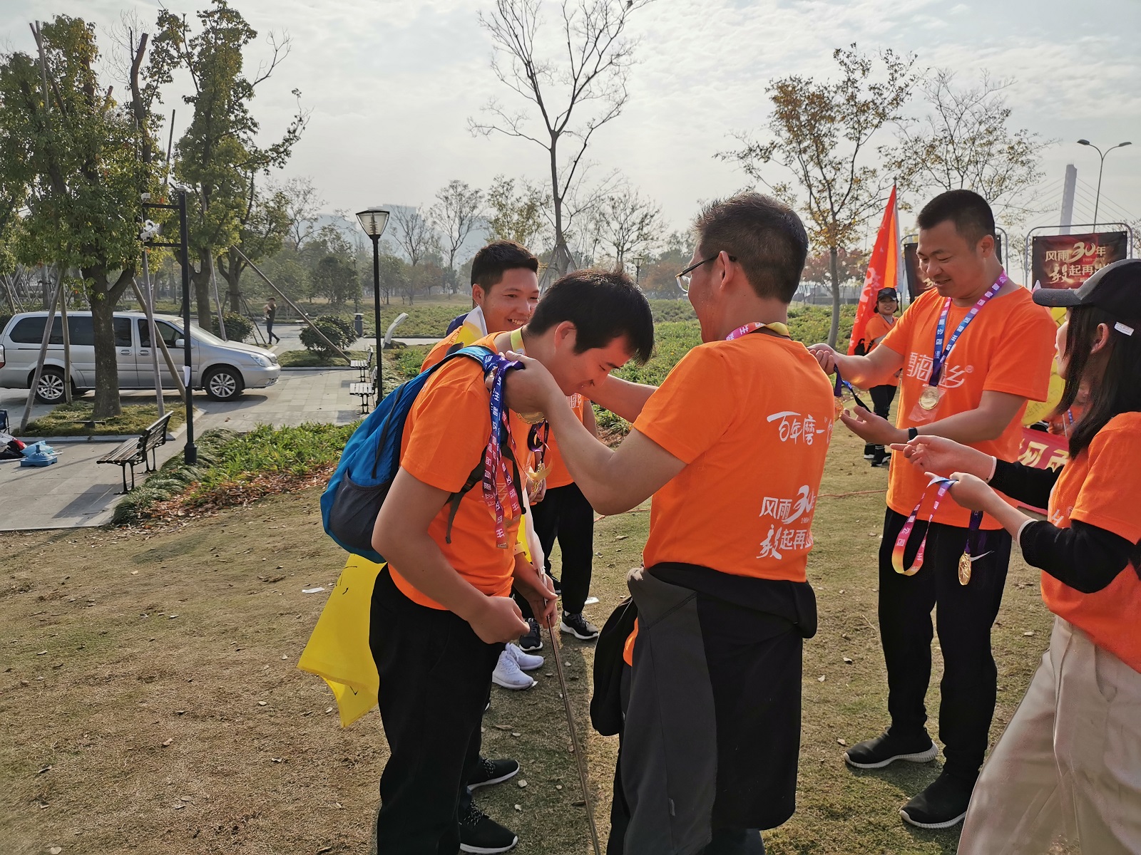 30公里,说长不长,说短不短,但对于大部分第一次参加毅行的伙伴来说却算是不小的挑战。奥体中心出发,跨越九堡大桥,抵达城市阳台,再跨西兴大桥,最后回到奥体中心,一线钱塘江景,一路磕绊……因为有团队的陪伴,再难都能坚持。